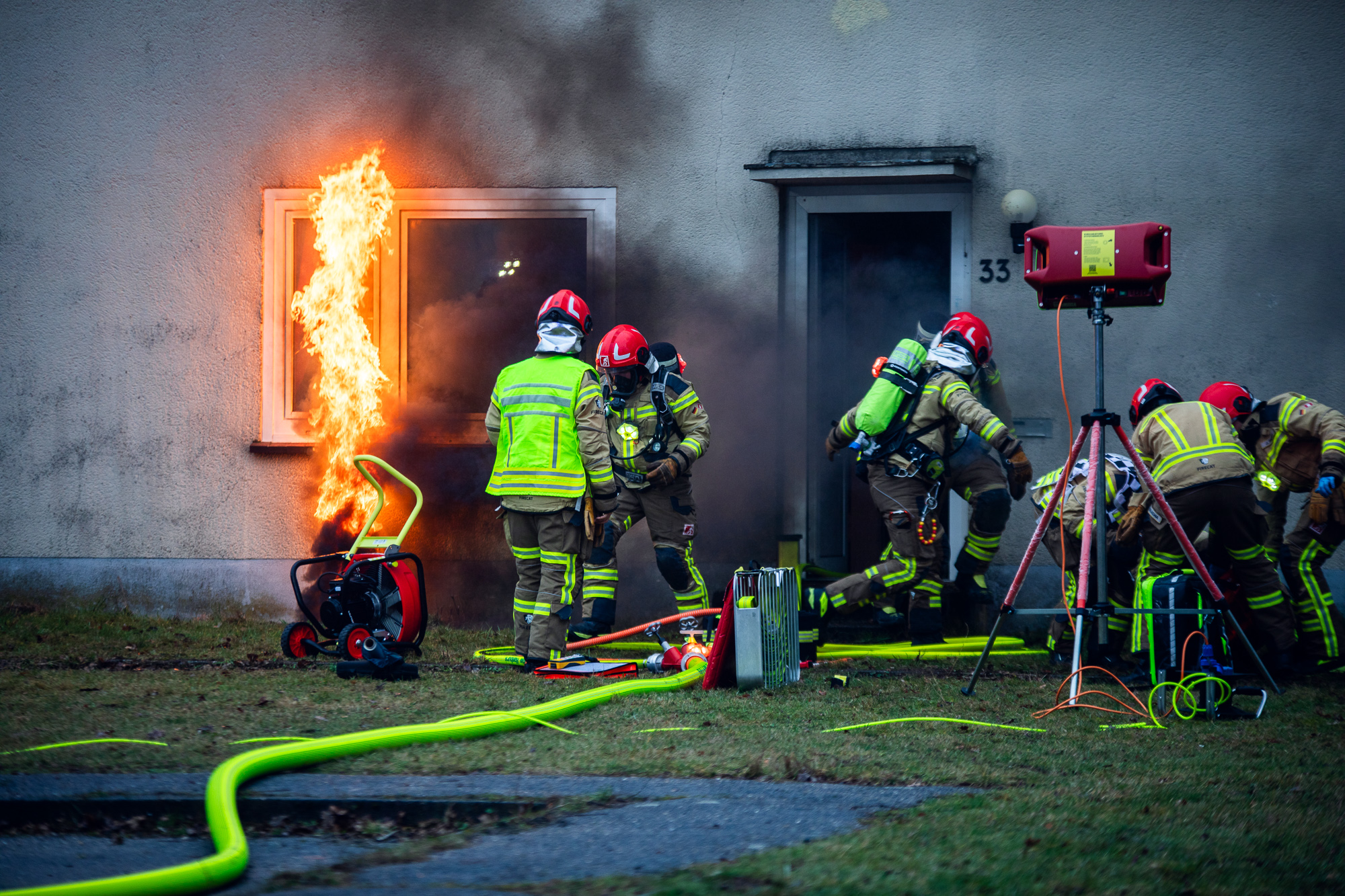 Neben den Übungsszenarien entstanden auch gezielt Foto- und Videoaufnahmen für Sponsoren und Partner, darunter unter anderem Firecat aus Slowenien. Die realitätsnahen Effekte und die professionelle Darstellung der Einsatzlagen lieferten eindrucksvolles Material für Öffentlichkeitsarbeit, Ausbildung und Produktpräsentation.