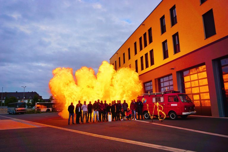 Die starke Verrauchung erfolgte durch unseren speziell angefertigten Nebelanhänger – es kamen keine pyrotechnischen Raucheffekte zum Einsatz, um den Tunnel vor Schäden und Verunreinigungen zu schützen. In Kombination mit Licht- und pyrotechnischen Effekten konnte eine realistische Situation geschaffen werden, in der die Feuerwehrleute plötzliche Explosionen durch die Anwesenheit von Gasflaschen im Fahrzeug trainieren konnten, ohne dass eine echte Gefahr bestand.