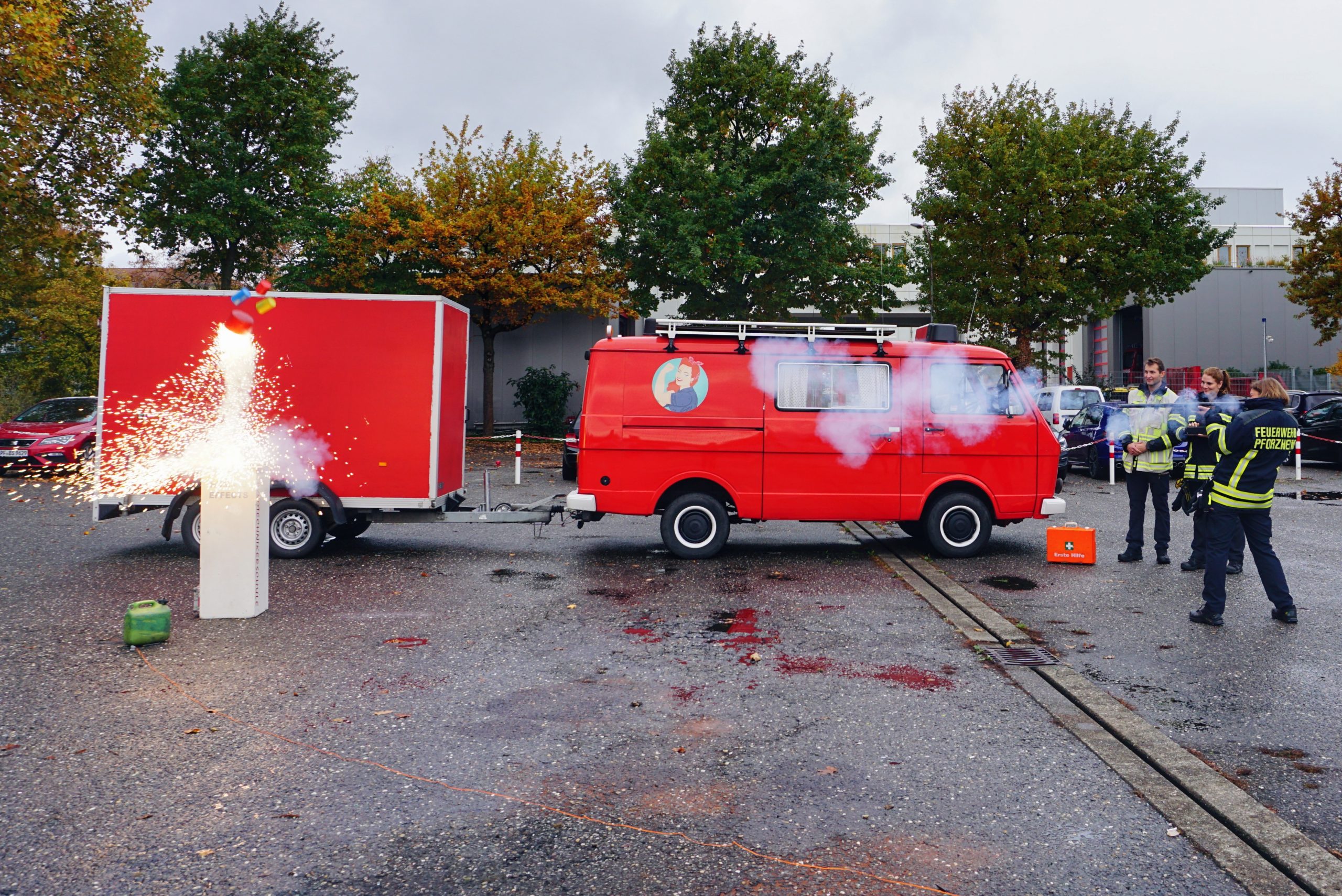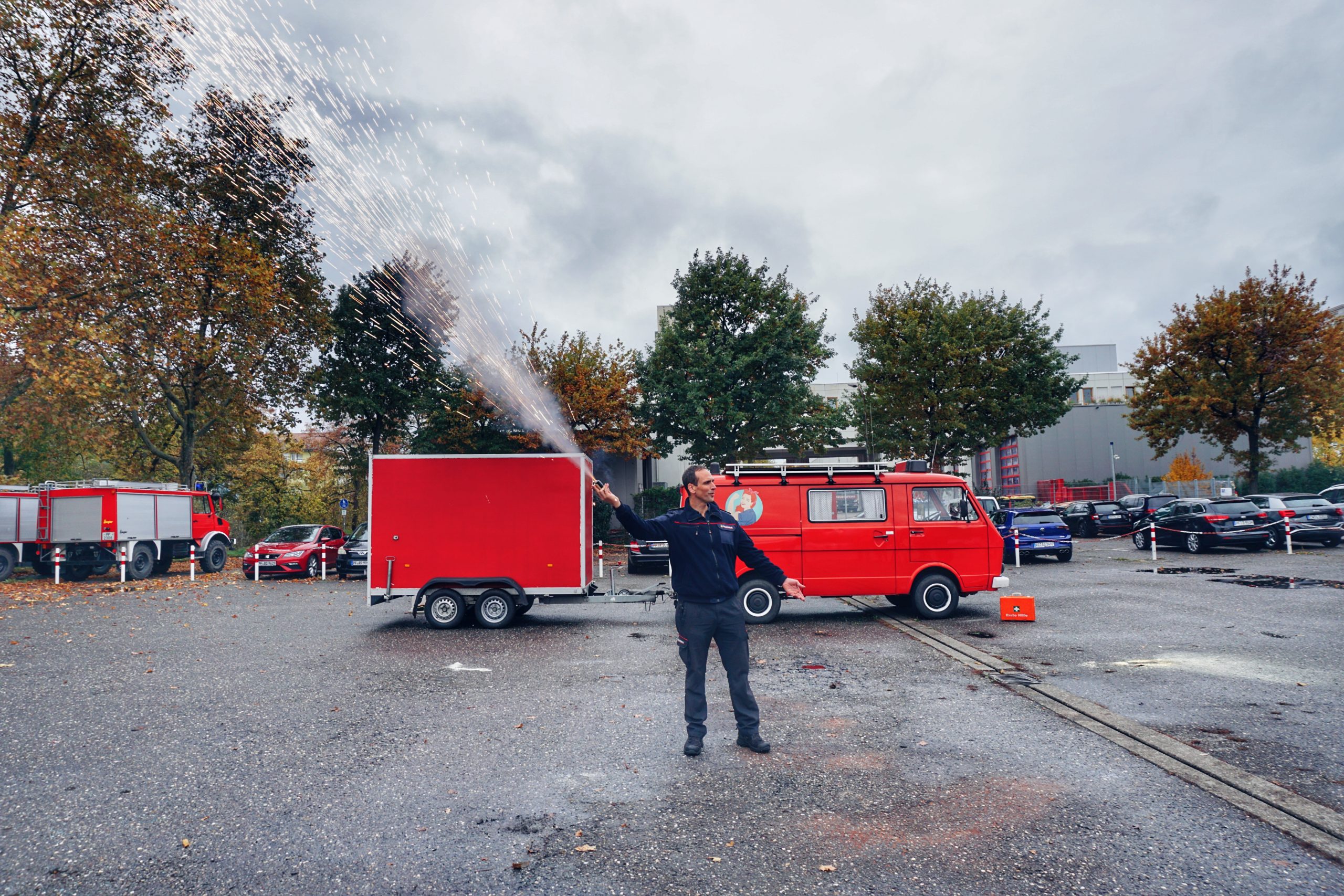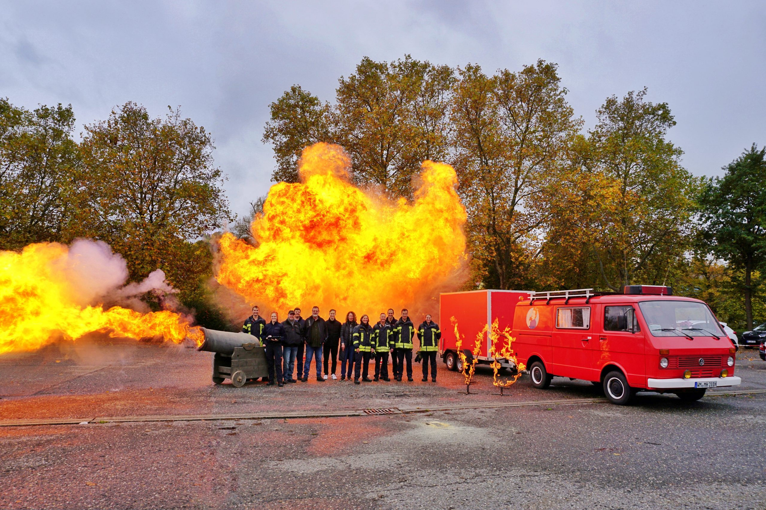 Die Teilnehmenden konnten selbst verschiedene pyrotechnische, feuergefährliche und mechanische Effekte auslösen – unter fachlicher Anleitung und mit entsprechender Sicherheitsunterweisung. Dabei wurde verdeutlicht: Viele Effekte wirken gefährlich, sind es aber bei sachgemäßer Anwendung nicht.